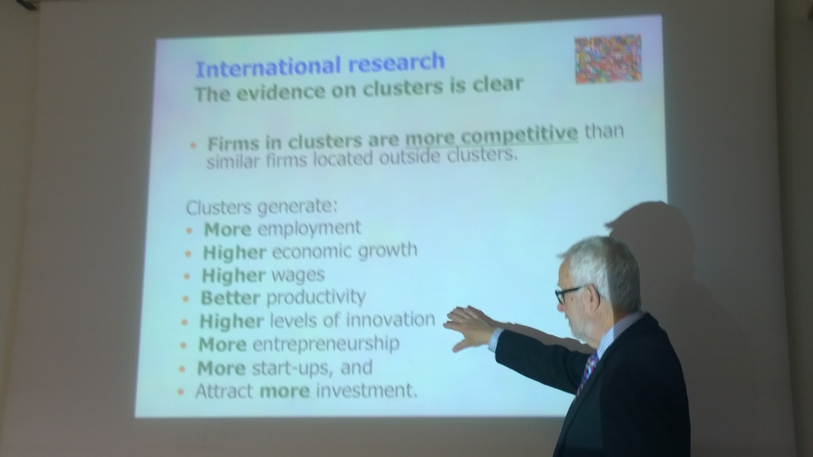 Dopo aver visitato 50 paesi si è soffermato in Italia per la prima volta per una formazione rivolta ai Cluster Manager e ai Policy Makers lombardi, trattando a 360 gradi il tema di sviluppo e gestione dei cluster. Al corso hanno partecipato anche alcuni esponenti di Regione Lombardia e i funzionari del sistema Confindustria Lombardia più interessati al tema. L'iniziativa è stata occasione imperdibile per confrontarsi e simulare alcuni step critici che si incontrano nello svolgere il difficile e sfidante lavoro del Cluster Manager, prendendo spunto dai migliori esempi in giro per il mondo!