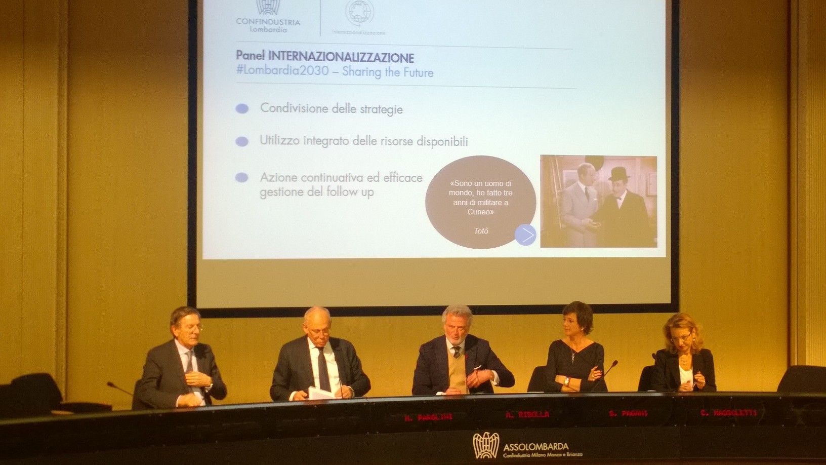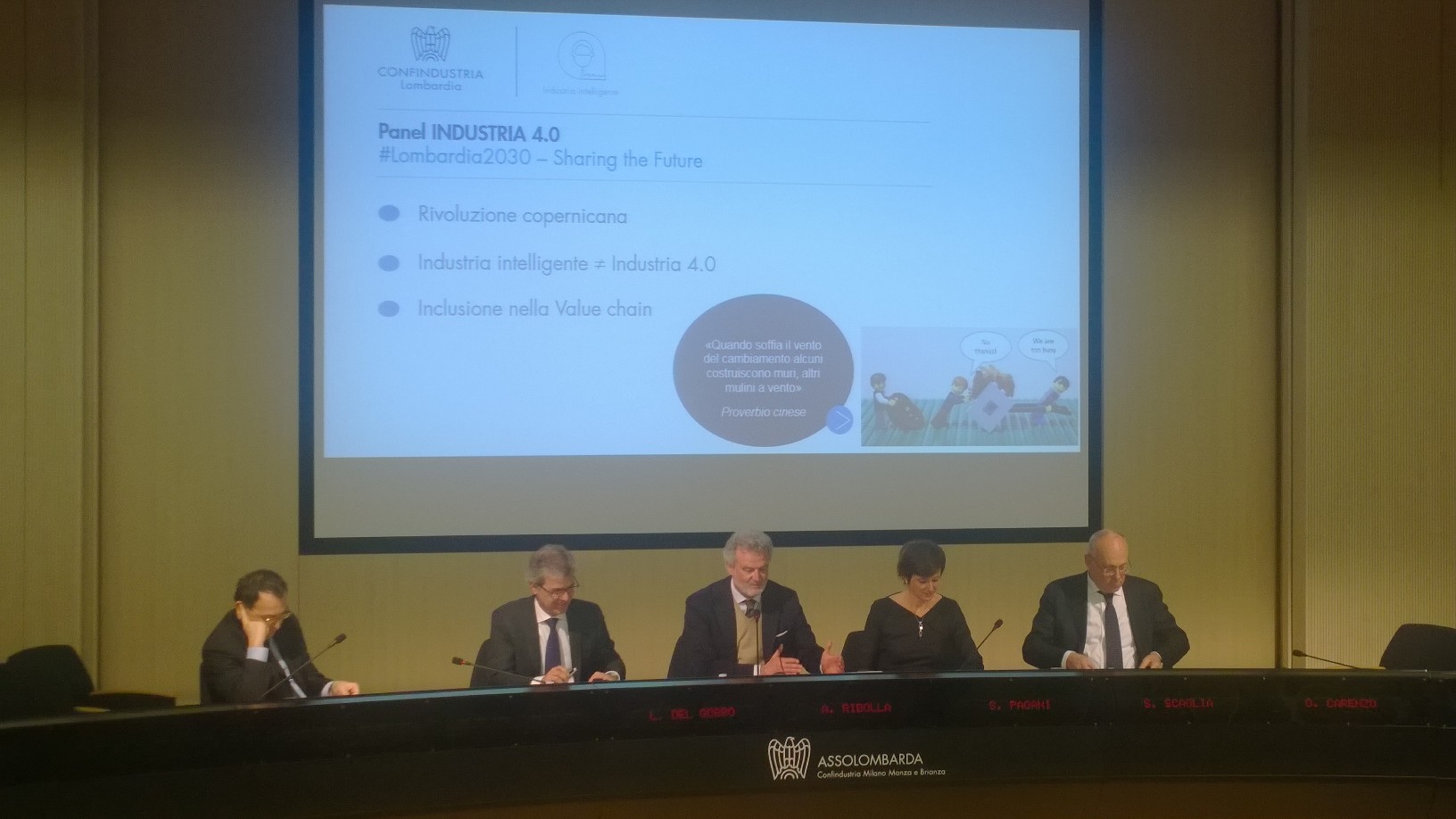 E il presente si traduce in una serie di azioni e obiettivi messe sul tavolo da Confindustria Lombardia, su tutte: progetto per lo sviluppo dell’Istruzione tecnica; la crescita dei Cluster tecnologici lombardi; fare sistema regionale mettendo a fattor comune fondi dedicati e competenze per l’internazionalizzazione; la creazione di un centro di sviluppo e sperimentazione sull’Industria 4.0 nelle aree di EXPO; portare in pianta stabile in Lombardia il World Manufacturing Forum; la promozione della macroregione EUSALP e dei network europei e all’interno di essi la valorizzazione dell’industria lombarda.
