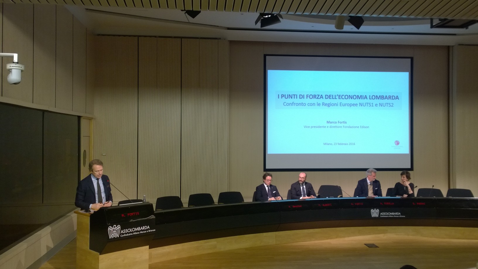 L’incontro è stato introdotto dagli interventi del Direttore del Centro Studi di Confindustria Luca Paolazzi, del Professor Fernando Alberti di Università Cattaneo – LIUC e dal contributo del vicepresidente di Fondazione Edison Marco Fortis, autore del focus ‘Il tessuto economico-produttivo della Lombardia’ per #Lombardia2030: “Numerosi sono i punti di forza dell’economia lombarda, ma poco noti al grande pubblico. La Lombardia è in Europa la seconda regione per generazione di PIL e la prima per valore aggiunto industriale. E considerandola uno stato a sé stante, tra i Paesi europei si posizionerebbe al decimo posto in termini di PIL e all’ottavo posto per valore aggiunto industriale” ha dichiarato il prof. Marco Fortis.