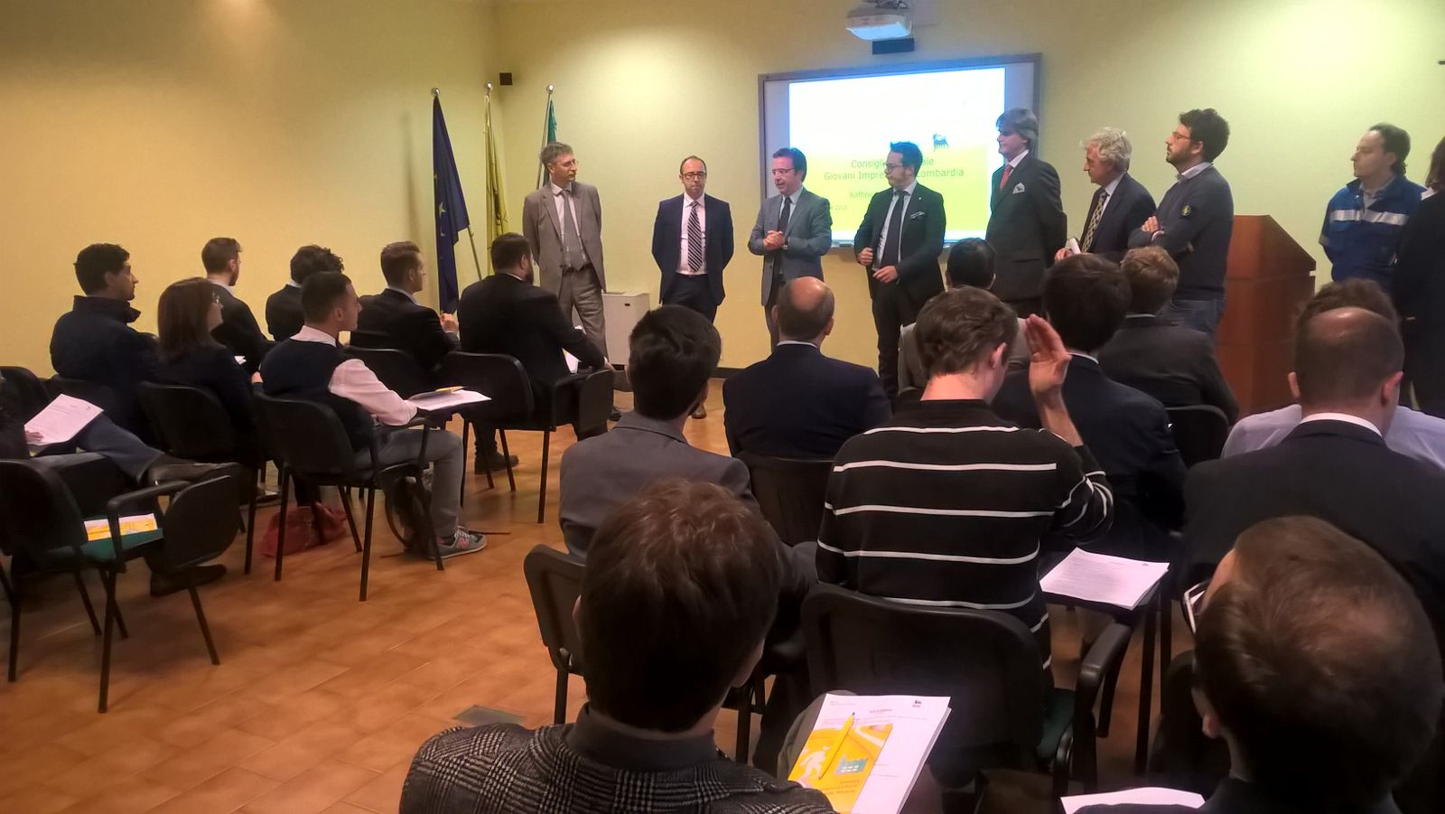 «Mi sono impegnato personalmente affinché il nostro territorio potesse oggi ospitare il Consiglio Regionale dei Giovani Imprenditori di Confindustria Lombardia» ha detto Marco Salvadeo, Presidente del Gruppo Giovani Imprenditori di Confindustria Pavia. «Come è stato detto in assemblea di Confindustria Pavia all'inizio di questa settimana, è necessario ascoltare il territorio. Per capirne le difficoltà e per presentare delle soluzioni. Essere stati qui oggi, allora, vuol dire ascoltare Sannazzaro, ma non solo; significa soprattutto entrare in diretto contatto con la Raffineria Eni, vero punto di riferimento per il tessuto economico locale. La vision ecosostenibile e green che il cane a sei zampe sta adottando anche qui a Sannazzaro dev'essere interpretata come un elemento di competitività per tutto il territorio e di attrattività per i giovani che si stanno affacciando al mercato del lavoro. Qui si produce energia in maniera innovativa».
