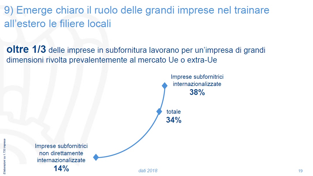 - Le filiere sul territorio sono molto lunghe e vengono trainate dalle grandi aziende: un terzo delle aziende che lavora in subfornitura lavora per grandi committenti rivolti a mercati UE ed extra-UE;