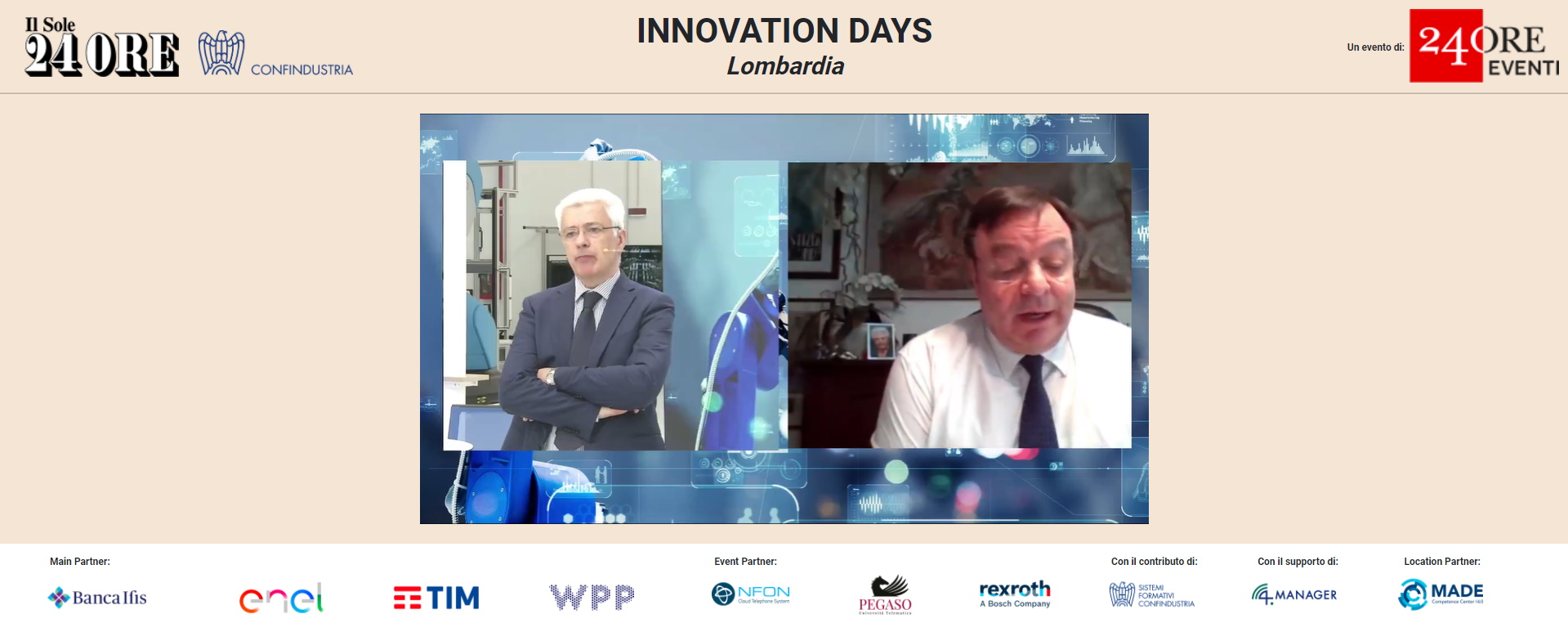 Nel pomeriggio, “Innovation Days – La fabbrica del futuro” è proseguito con un webinar dedicato all’approfondimento tecnico di alcuni temi legati all’innovazione digitale e sostenibile nel comparto della meccanica e della meccatronica, con un focus sul ruolo dei Digital Innovation Hub e Competence Center a supporto dell’innovazione aziendale a cui è intervenuto Gianluigi Viscardi, Presidente Digital Innovation Hub Lombardia. Tra gli altri temi toccati, le agevolazioni fiscali e finanziarie per l'innovazione 4.0 e green, e le tecnologie, competenze e formazione per le fabbriche del futuro.