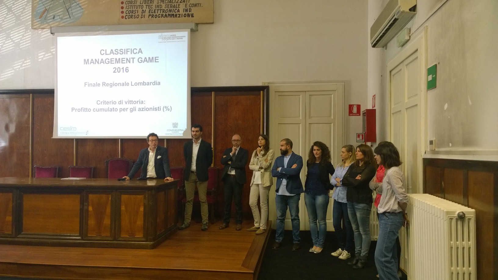 I vincitori, premiati dalla commissione regionale Education e dal presidente dei Giovani Imprenditori di Confindustria Lombardia Federico Ghidini, sono gli studenti Marcello Bozzini, Chiara Introcaso, Giacomo Nicolini e Chiara Zerino dell’Istituto superiore statale ‘Taramelli-Foscolo’ di Pavia che si sono aggiudicati l’edizione 2016 del Management Game. Seconda classificata la squadra dell’Istituto di Istruzione Superiore Statale "Alberti" di Bormio – Sondrio. Sul podio anche gli studenti del Liceo scientifico Belfiore di Mantova.