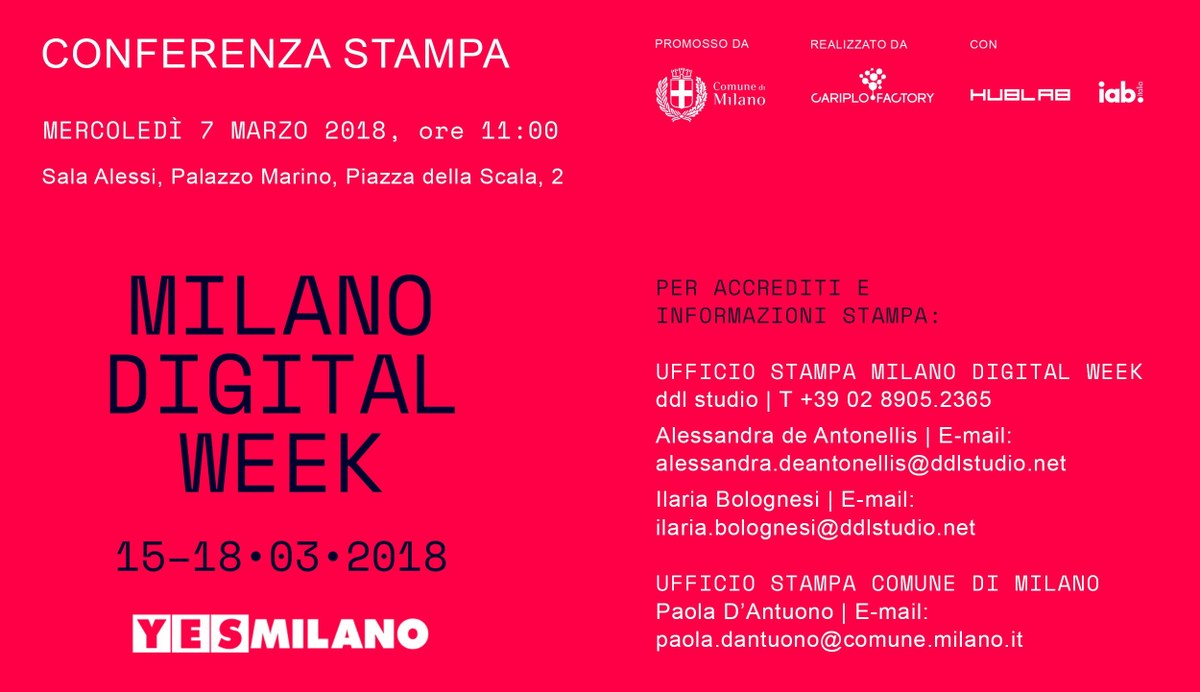Conferenza stampa in occasione della Milano Digital Week che si terrà a Milano dal 15 al 18 marzo 2018.