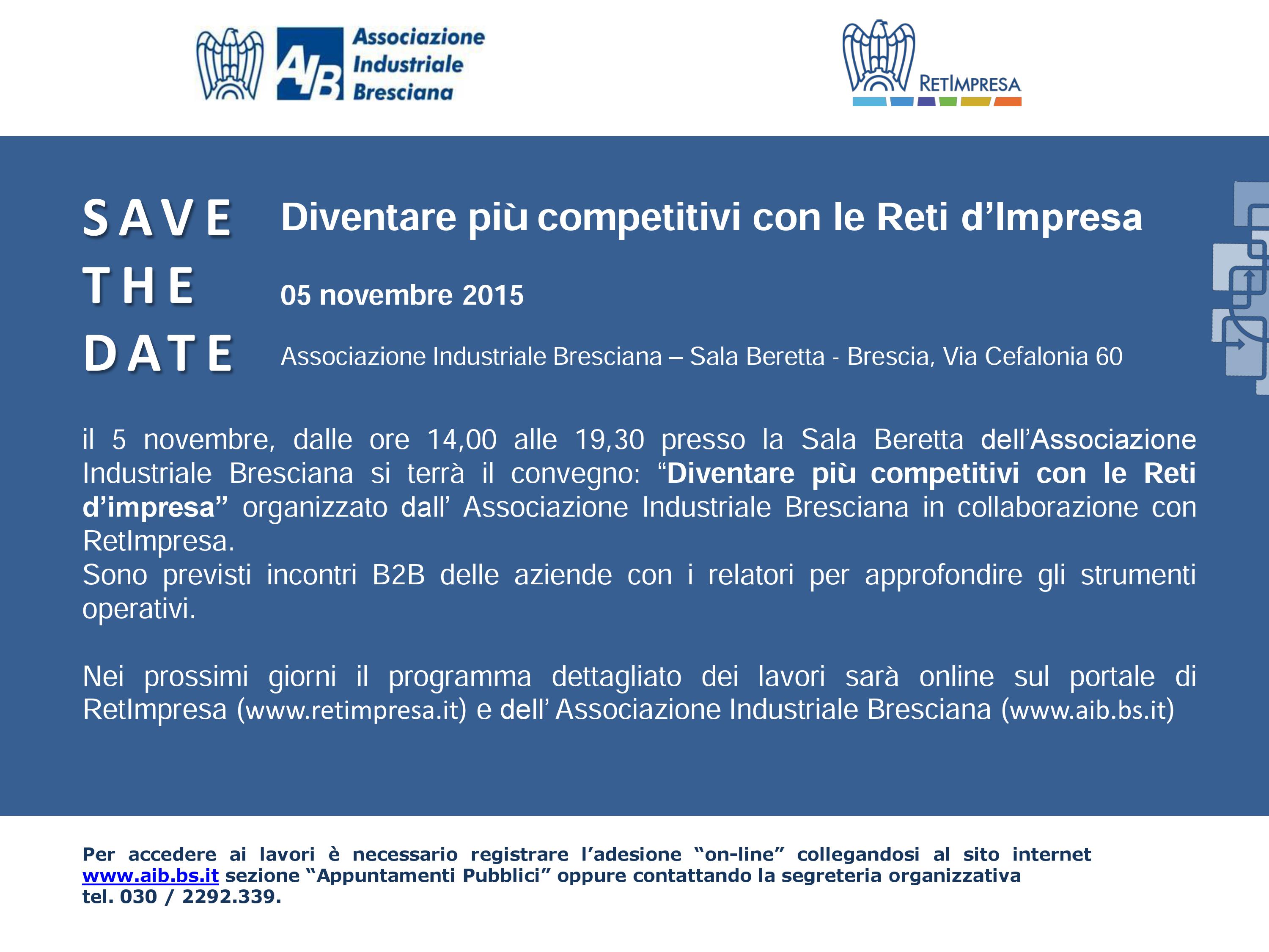 Per accedere ai lavori è necessario registrare l'adesione on line collegandosi al sito internet www.aib.bs.it - sezione "Appuntamenti pubblici" oppure contattando la Segreteria organizzativa: Tel. 030.2292339.