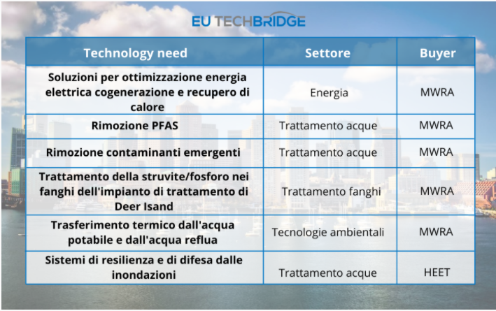 Fai richiesta per essere selezionato per incontrare buyer della East Coast statunitense interessati alle tue soluzioni in ambito energia e trattamento acque e fanghi di depurazione.