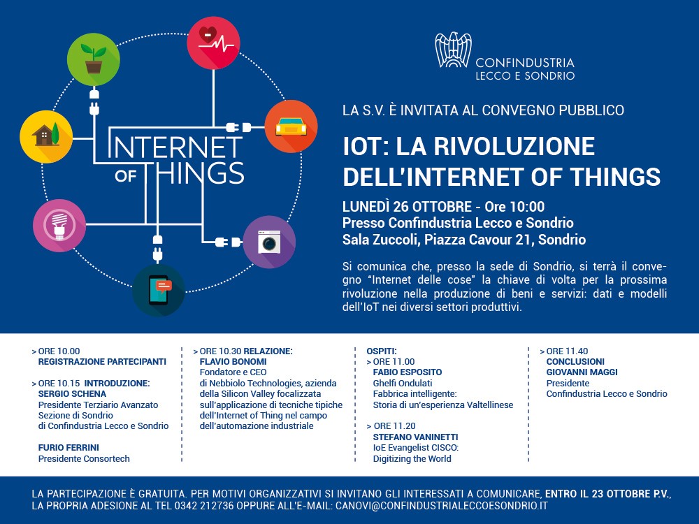 La partecipazione è gratuita. Per motivi di carattere organizzativo, si pregano gli interessati di confermare la propria presenza alla Confindustria Lecco e Sondrio: Tel. 0342.212736 - Email: canovi@confindustrialeccoesondrio.it entro il 23 ottobre p.v.