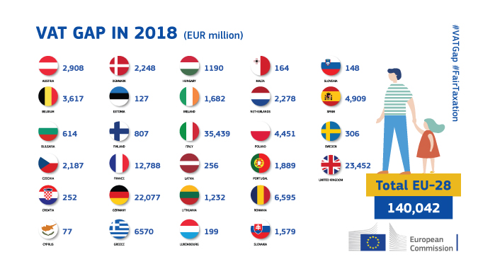 La Commissione Europea ha pubblicato i risultati di “Study and Reports on the VAT Gap in the EU-28 Member States”, relazione che analizza il cosiddetto "divario dell'IVA" - ossia la differenza complessiva tra il gettito IVA atteso e l'importo effettivamente riscosso – nei 28 Stati membri per l’anno 2018.
