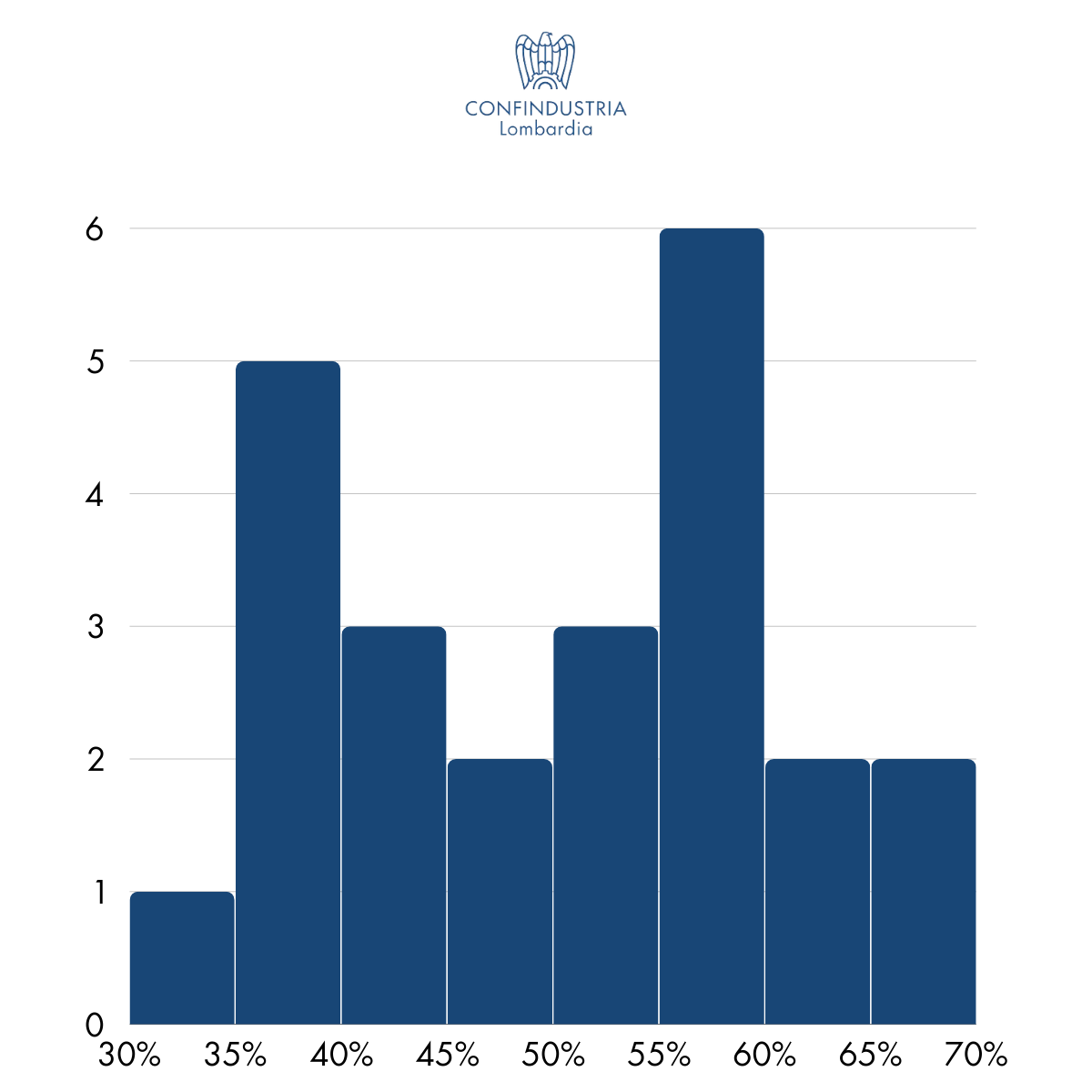 I punteggi medi ottenuti dalle imprese nelle valutazioni si sono distribuiti su un range compreso tra il 30% e il 65%, con una media del 49.46% e picchi di eccellenza pari al 67%.